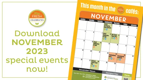 There is always something happening on one of our campuses. It could be a special theme meal, special hours, new initiatives or another award. Check back frequently to get your Fresh Update!